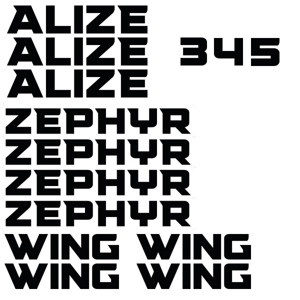 3 adhésifs voile blanc "Alize" 520x115mm - 3 adhésifs voile "3""4""5" 120 x 115mm- 4 adhésifs voile "Zephir" 600 x 95mm- 4 adhésifs voile "Wing" 380x95mm